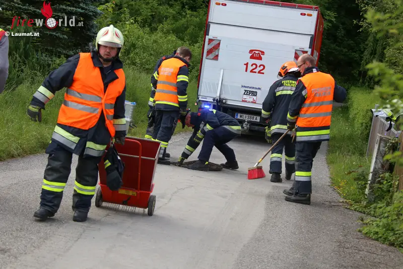 THALHEIM BEI WELS (OÖ): Die Feuerwehr stand Mittwochvormittag, 18. Mai 2016, bei einem Austritt von Hydrauliköl aus einem Müllfahrzeug in Thalheim bei Wels (Bezirk Wels-Land) im Einsatz.