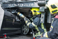 Nach Freigabe durch die Beamten der Autobahnpolizei Tribuswinkel wurde der Pkw von den Feuerwehreinsatzkräften unter dem Auflieger geborgen. Aufgrund des Gewichtes des Lkw entschied man sich dazu, den Auflieger mit Hebekissen soweit anzuheben, um den Pkw mittels Seilwinde rauszuziehen zu können. Mit der hydraulischen Rettungsschere mussten jedoch zuvor Teile der A-Säule entfernt werden, da sich diese unter den Auflieger verkeilten. Die Bergung des Aufliegers erfolgte durch eine Fachfirma. Es kam zu einer erheblichen Verkehrsbehinderung während der Aufräumarbeiten. Seitens der Feuerwehr standen die FF Baden-Leesdorf und die FF Tribuswinkel im Einsatz.