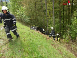 Wie durch ein Wunder blieben alle Insassen zum Glück gänzlich unverletzt. Um das Unfallwrack bergen zu können, musste von den Einsatzkräften vorweg einiges Gestrüpp entfernt werden um anschließend die Fahrzeugbergung mittels Seilwinde ungehindert durchführen zu können. So konnte der Pkw unter Einsatz einer Seilwinde über die Böschung zurück auf die Straße gezogen werden, wo er einem Abschleppunternehmen übergeben werden konnte.