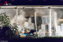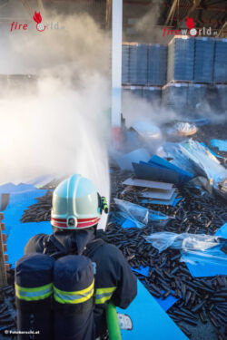 KREMSMÜNSTER (OÖ): Am Mittwoch, den 25.05.2016, um 03:06 Uhr wurde die Feuerwehr zu einem Einsatz über die Brandmeldeanlage eines Glasfabrikanten zu einem Brand alarmiert. Die Alarmierung stellte sich als Großbrand in einem Lagerblock heraus.