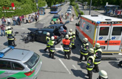 MÜNCHEN (BAYERN): Bei einem Verkehrsunfall in Neuperlach sind am Nachmittag des 28. Mai 2016 drei Personen verletzt worden. Im Kreuzungsbereich der Quiddestraße und Albert-Schweitzer-Straße ist es zu einem Zusammenstoß von zwei Fahrzeugen gekommen. Die Besatzung eines Rettungswagens forderte zur Unterstützung die Feuerwehr an.