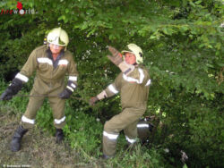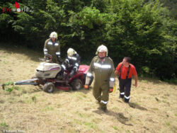 Am Einsatzort stellte sich folgende Lage für die Wehr dar: Ein Rasentraktor ist von einer Hofeinfahrt ca. 50m über eine steile Wiese und in weiterer Folge ca. 5m sich überschlagend in ein Waldstück abgestürzt, wo er stark beschädigt auf der Seite zu liegen kam. Der Lenker des Rasentraktors wurde vor Eintreffen der Feuerwehr bereits notärztlich versorgt und mit unbestimmten Verletzungen ins nächste Krankenhaus eingeliefert.