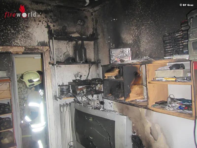 Der Brand konnte rasch unter schwerem Atemschutz mit einem C-Rohr gelöscht und der toxische Brandrauch mit einem Hochleistungslüfter aus der Wohnung entfernt werden. In der Brandwohnung wurden keine Personen vorgefunden. Der durch den Brand entstandene Schaden wird auf ca. 25.000 € geschätzt. Die Brandursache ist Gegenstand von Ermittlungen. Die Berufsfeuerwehr Graz stand unter der Einsatzleitung von Gernot Eisenberger mit fünf Fahrzeugen und 21 Mann im Einsatz.