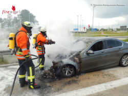 Vom Besitzer eingeleitete Löschversuche mit einem Pulverlöscher blieben erfolglos, sodass der Wagen bei dem das Feuer auch den Innenraum schwer in Mitleidenschaft gezogen hat, wohl nur noch Schrottwert hat. Nach der ebenfalls durch die Feuerwehr erfolgten Eindämmung von auslaufenden Betriebsstoffen konnten die Kräfte die Einsatzstelle wieder verlassen. Verletzt wurde niemand; der Fahrer konnte den Wagen selbständig verlassen.