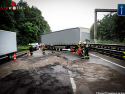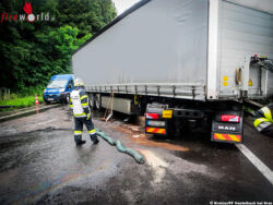 Durch den Aufprall in die Mittelleitschiene wurde die Dieselleitung beschädigt, woraufhin einige Liter Treibstoff ausflossen. Umgehend wurde der Diesel aufgefangen und das Leck abgedichtet, der kontaminierte Bereich der Fahrbahn musste mit Ölbindemittel gesäubert werden. Die weiteren Einsatztätigkeiten der Feuerwehren beschränkten sich auf Aufbau eines Brandschutzes, Sicherungs– und Aufräumarbeiten der Unfallstelle und Unterstützung bei den Bergearbeiten.