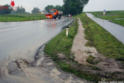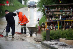Die Wasserstände der Bäche und Flüsse sind rapide gefallen und auch die Oberflächenwässer sind stark zurückgegangen. Derzeit sind hauptsächlich noch Aufräum- bzw. Auspumparbeiten im Gange. Seit den frühen Morgenstunden stehen 20 Feuerwehren mit ca. 450 Feuerwehrmitgliedern im Einsatz.