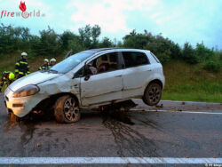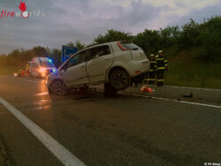 Bereits drei Minuten nach der Alarmierung rückte das VRF (Vorausrüstfahrzeug) mit fünf Mann zur Einsatzstelle aus. Beim Eintreffen am Unfallort mit der FF Dietach war das Rote Kreuz sowie das NEF bereits vor Ort. Ein Pkw besetzt mit vier Personen kam aus ungeklärter Ursache von der Fahrbahn ab, streifte eine Steinwand, wurde wieder zurück auf die Straße geschleudert und kam am herausgerissenen Motorblock zum Stehen.