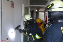 Doch auch das Öffnen von verschlossenen Türen mit unterschiedlichen Gerätschaften wurde geübt, beispielsweise wurden dazu Feuerwehräxte, Brechstangen, ein so genanntes Halligan-Tool aus Bad Fallingbostel aber auch Multicut-Sägen und Trennschleifer eingesetzt, um zum Beispiel stabile Metalltüren zu öffnen.