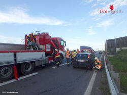 GRAFENWÖRTH (NÖ): Am Nachmittag des 3. Juni 2016 wurden die Feuerwehren Grafenwörth und Jettsdorf zu einer Menschenrettung mit eingeklemmter Person nach einem Verkehrsunfall auf die S5 gerufen.
