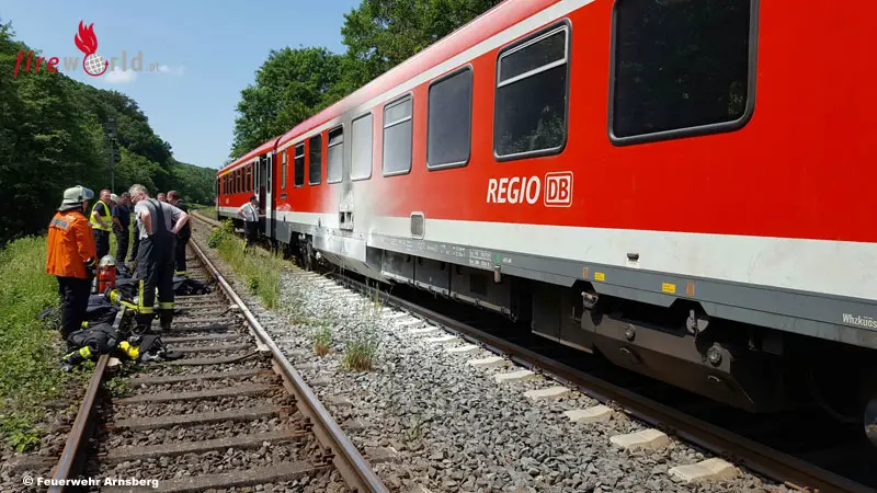 ARNSBERG (DEUTSCHLAND): Am Nachmittag des 5. Juni wurden gegen 14:00 Uhr die Hauptwachen Neheim und Arnsberg, der Basislöschzug 1 mit den Einheiten aus Neheim und Voßwinkel sowie der Rettungsdienst mit dem Notarzt zu einem Feuer in einem Triebwagen der deutschen Bahn bei Neheim alarmiert.