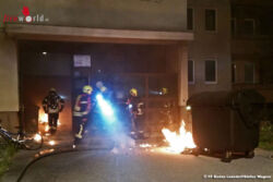 Da einige Stunden zuvor schon mehrere Müllinseln im Stadtgebiet gebrannt haben, wurde die gesamte Wohnhausanlage kontrolliert um weitere Brände auszuschließen.