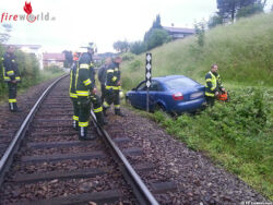 Hier setzte das Fahrzeug auf dem sogenannten "Kirchenweg", einem schmalen Fußweg, seine Fahrt Richtung Zentrum fort, wo es schließlich zwischen Gleiskörper und Weg stecken blieb. Nachdem eine Fahrzeugbergung im Gleisbereich mangels Zufahrt unmöglich war, entschlossen sich die Einsatzkräfte der Feuerwehr zu einer Bergung über ein Hanggrundstück mittels Einbauseilwinde.