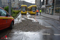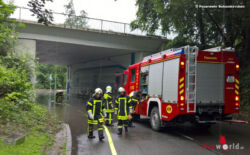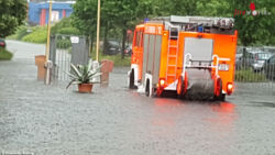 Gegen 14.30 Uhr erreichte das vom Deutschen Wetterdienst angekündigte Gewitter mit Starkregen Essener Stadtgebiet. In den nächsten dreißig Minuten ging ein ordentlicher Regenguss mit Blitz und Donner nieder. Die Folge waren überflutete Straßen, vollgelaufene Keller und einige Tiefgaragen. Berufs- und Freiwillige Feuerwehreinheiten rückten aus, sorgten für freie Kanaleinläufe und leidlich trockene Untergeschosse. Derzeit (Stand 18.30 Uhr) werden die letzten gemeldeten Einsatzstellen angefahren, schwerpunktmäßig liegen die Schäden im Essener Westen und Süden. Insgesamt weist die Statistik 152 Einsätze aus. Die Höhe der Sachschäden ist nicht bekannt. Verletzt wurde niemand.