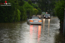 Am Dienstagabend entlud sich eine Gewitterzelle um kurz vor 20 Uhr über Untergrombach. Innerhalb kürzester Zeit fielen teilweise über 30l/m² Regen und Fahrbahnen waren überflutet – so auch die Bundesstraße 3 die durch Untergrombach führt. Um 20.16 Uhr wurde die Abteilung Untergrombach zu den ersten Notrufmeldungen von der Feuerwehrleitstelle alarmiert. Kurz darauf gab die Feuerwehrleitstelle aufgrund der Unwetterlage den Alarm für die Führungsgruppe Bruchsal. Nachdem sich die Notrufe in Untergrombach geballt häuften wurden nach und nach alle weiteren Abteilungen der Feuerwehr Bruchsal zur Unterstützung und Sicherung des Grundschutzes alarmiert.