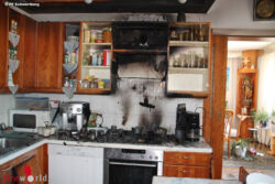 Am Einsatzort angekommen wurde vom Einsatzleiter festgestellt das es sich um einen Küchenbrand handelte. Ausgelöst wurde dieser durch heißes Öl, welches sich auf der Herdplatte entzunden hatte. Umgehend wurde der Befehl zum Innenangriff mit schwerem Atemschutz und der Hochdrucklöscheinrichtung unseres Tanklöschfahrzeuges erteilt.