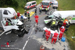 Oö: Zwei Eingeklemmte bei Kollision zweier Kleintransporter bei Hargelsberg – 1 Toter