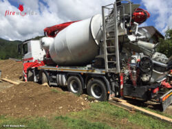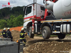 Ein Betonmischwagen war im weichen Untergrund eingesunken und drohte umzustürzen. Die Feuerwehr rückte unter Kommandant-Stellvertreter Hannes Koch mit zwei Tanklöschfahrzeugen und 14 Mann zur Einsatzadresse in Hörgas aus. Die Lage stellte sich so dar, dass der Wagen voll Beton war. Offenbar durch die Verwindungen des Fahrzeuges, nach dem Einsinken, konnte die Trommel nicht mehr bewegt werden. Dadurch gerieten die Hilfskräfte unter Zeitdruck, damit sich die Masse nicht verfestigte.