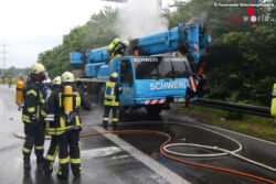 Deutschland: Brand eines 40 Tonnen Autokrans in Mönchengladbach