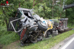 GUNSKIRCHEN (OÖ): Zu einer Kollision zweier Lkw ist es am Montag, 13. Juni 2016, um etwa 9 Uhr Vormittag in Gunskirchen gekommen. Nach ersten Ermittlungen der Polizei dürfte ein mit Schotter beladener Lastwagen nach einem Reifenplatzer links vorne auf die Gegenfahrbahn geraten sein.