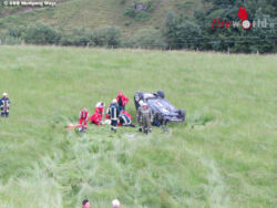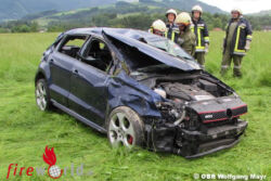 TERNBERG (OÖ): Die Feuerwehren Ternberg und Sand wurden am 12.06.2016 zu einem Verkehrsunfall mit einer eingeklemmter Person alarmiert. Auf der B115 zwischen dem Kraftwerk Lahrndorf und Ternberg war ein Pkw rechts von der Fahrbahn abgekommen, über die Böschung gestürzt und nach einem Überschlag auf dem Dach in der Wiese zu liegen gekommen.