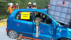 TRIEBEN (STMK): „Schwerer Verkehrsunfall auf der B114, Bereich Sunk mit zwei Pkw und mehreren eingeklemmten Personen,“ so lautete die Übungsannahme am 10. Juni 2016 gegen 18:15Uhr für die FF Trieben und FF Hohentauern sowie das Rote Kreuz Trieben.