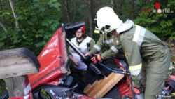 Das RLFA 2000 Hohentauern sicherte den zweiten PKW mittels Greifzug, stellte den Brandschutz sicher und begann dann unverzüglich mit der Menschenrettung. In Absprache mit den inneren Retter wurden das Dach und die Beifahrertüre entfernt. Danach konnten beide Personen schonend aus dem Fahrzeug gerettet und dem Roten Kreuz zur weiteren Versorgung übergeben werden.
