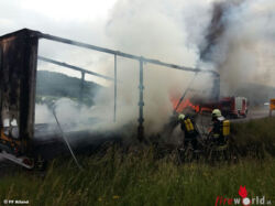 Gegen 09:40 Uhr wurden die laut Autobahnalarmplan zuständige Freiwillige Feuerwehr Alland und Heiligenkreuz über die Feuerwehrbezirksalarmzentrale Baden alarmiert. Als das erste Tanklöschfahrzeug der FF Alland an der Einsatzstelle eintraf, stand der bereits abgekoppelte Auflieger, beladen mit Materialien für eine Handelskette (diverse Handelsartikel und Elektronikgeräte) in Vollbrand.