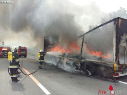 Umgehend wurde die Autobahn von der Polizei und ASFiNAG gesperrt und die Löschmaßnahmen durch die Feuerwehreinsatzkräfte unter Atemschutz aufgenommen.