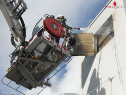 Nö: Silobrand in Maria Enzersdorf über Teleskopmastbühne bekämpft