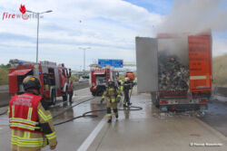 VÖSENDORF (NÖ): Am 16.06.2016 wurde die Freiw. Feuerwehr Vösendorf mittels Sirene und Pager zu einem Lkw-Brand auf die S1 alarmiert. Auf der S1 angekommen, hatte der Fahrer sein Zugfahrzeug geistesgegenwärtig von dem mit Eisen belandenen und brennenden Anhänger bereits abgehängt und gesichert abgestellt.