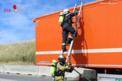 Gemeinsam konnte der Brand nach ca. 30 Minuten unter Kontrolle gebracht und mit dem Ausräumen des Lkw begonnen werden. Sämtliche Glutnester wurden danach von den Kräften abgelöscht und ein Spezialunternehmen mit der Entsorgung und der Straßenreinigung beauftragt.