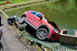 LILIENFELD (NÖ): Samstagmittag, den 18. Juni 2016, wurde die Feuerwehr Lilienfeld zu einer Fahrzeugbergung „Pkw in Fischteich“ alarmiert. Der Fahrzeuglenker kam noch aus unkontrollierter Ursache von der Liftstraße ab, durchbrach den Zaun und blieb seitlich in kritischen Zustand mit seinem Mazda im Fischteich hängen.