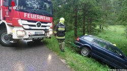ROHR IM GEBIRGE (NÖ): Ziemlich genau innerhalb von 24 Stunden wurden die Kameraden der Feuerwehr Rohr im Gebirge zu zwei Einsätzen alarmiert. Am Samstag den 18. Juni 2016 kam ein Pkw von der L4056 ab und kam im Bachbett auf der Fahrerseite zum liegen