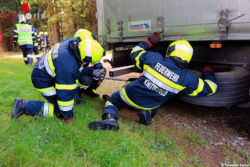 „Um den rund 16 Meter langen Koloss auf der engen Lichtung wenden zu können mussten Bäume gefällt werden“, schildert Einsatzleiter Brandmeister Robert Gruber. Nach rund zwei Stunden konnte der LKW aus seiner misslichen Lage befreit und wieder in Fahrtrichtung gedreht werden.