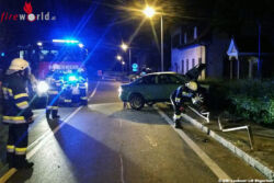 Als die ersten Feuerwehrkameraden an der Einsatzstelle eintrafen, fanden sie das Unfallwrack am Bürgersteig stehend vor. Allerdings war der Lenker nicht auffindbar. Nach Rücksprache mit der anwesenden Polizei wurde die Unfallstelle abgesichert und ausgeleuchtet, Brandschutz errichtet sowie die Bergung des Fahrzeuges durchgeführt.