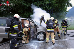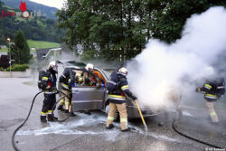 Pkw-Brand “Schaller – Tankstelle” so die Meldung. Der Pkw brannte im Bereich des Motorraumes lichterloh, auch der Einsatz von Pulverlöschern konnte den Brand nicht eindämmen. Erst der Einsatz von zwei Hochdruckrohren unter umluftunabhängigen Atemschutz bot den Flammen Einhalt. Das Fahrzeug wurde total beschädigt.