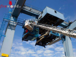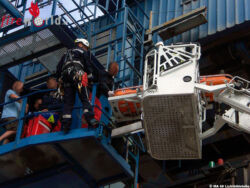 WIEN (W): Am Morgen des 22. Juni 2016 wurde die Berufsfeuerwehr Wien zu einem Einsatz auf den Frachtenbahnhof in Wien–Brigittenau gerufen. Der Kranführer eines Portalkrans erlitt einen medizinischen Notfall in der ca. 15 Meter über Fußbodenniveau befindlichen Krankanzel.