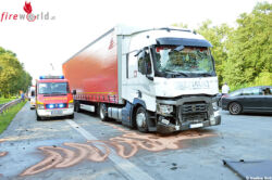 Bei dem Aufprall wurden die Beifahrerin sowie ein Kind schwer verletzt. Der Fahrer und zwei weitere im Fahrzeug befindlichen Kinder wurden leicht verletzt. Ebenfalls leichtere Verletzungen erlitt der Lkw-Fahrer beim dem Aufprall. Entgegen ersten Meldungen stellte sich beim Eintreffen, der Feuerwehr schnell heraus, dass niemand in den Fahrzeugen eingeklemmt wurde. Die Feuerwehr, die noch vor Polizei und Rettungsdienst vor Ort war übernahm zunächst die Versorgung der Verletzten und stellte parallel den Brandschutz sicher.