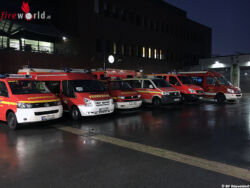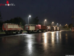 Nach dem Eintreffen aller beteiligten Feuerwehreinheiten aus Düsseldorf, dem Kreis Mettmann und dem Rhein-Kreis Neuss und einer kurzen Besprechung und Einweisung der Löschzüge sind die Einheiten seit ca. 5.00 Uhr auf dem Weg nach Hamminkeln und sollen dort ein eigenständiges Einsatzgebiet zugewiesen bekommen. Insgesamt sind derzeit 35 Fahrzeuge mit etwa 140 Einsatzkräften auf dem Weg nach Hamminkeln.