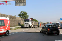 Nach einem Verkehrsunfall zwischen einem Lkw und Pkw kam ein Fahrzeug schwerbeschädigt gegen die Fahrtrichtung auf der zweiten Fahrspur verkehrsbehindernd zum Stillstand. Die verletzte Lenkerin wurde beim Eintreffen der Feuerwehr bereits vom Rettungsdienst betreut und zur weiteren Behandlung ins Krankenhaus gebracht.