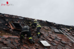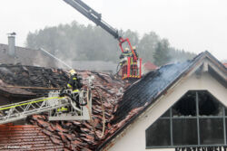 Die Brandbekämpfung mit Unterstützung der Drehleiter und dem Tanklöschfahrzeug wurde dann auch "von oben" durchgeführt. Auf Grund der schwierigen Brandausbreitung im Dachbereich, entschloss sich der Einsatzleiter, die Dachhaut öffnen zu lassen, damit zielgerichtet die Brandherde gelöscht werden konnten."Zwischen den zwei Schichten Brandschutzschalung hatte sich das Feuer ausgebreitet", berichtet der Einsatzleiter den Medien. Die Feuerwehr Rohrbach war bis 08:46 Uhr im Einsatz – insgesamt wurden 11 Feuerwehren zu dem Großeinsatz alarmiert. Nach Einsatzende begannen bereits die Untersuchungen zur Brandursache.