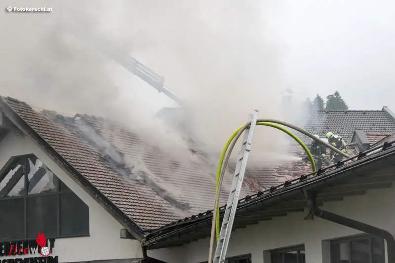 Die Brandbekämpfung mit Unterstützung der Drehleiter und dem Tanklöschfahrzeug wurde dann auch "von oben" durchgeführt. Auf Grund der schwierigen Brandausbreitung im Dachbereich, entschloss sich der Einsatzleiter, die Dachhaut öffnen zu lassen, damit zielgerichtet die Brandherde gelöscht werden konnten."Zwischen den zwei Schichten Brandschutzschalung hatte sich das Feuer ausgebreitet", berichtet der Einsatzleiter den Medien. Die Feuerwehr Rohrbach war bis 08:46 Uhr im Einsatz – insgesamt wurden 11 Feuerwehren zu dem Großeinsatz alarmiert. Nach Einsatzende begannen bereits die Untersuchungen zur Brandursache.