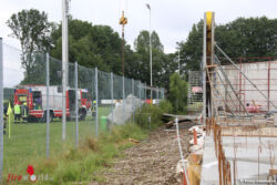 Neben dem Sportplatz wird gerade der neue gemeinsame Bauhof der Gemeinden Kirchberg-Thening, Oftering und Holzhausen errichtet. Auf dieser Baustelle stürzte eine große Betonschaltafel auf einem Arbeiter. Die zwei Feuerwehren der Gemeinde wurden zur Personenrettung alarmiert, ebenso Rettungsdienst und Notarzt. Der Schwerverletzte konnte schließlich rasch befreit werden, er erlitt jedoch schwerste Verletzungen. Nach notärztlicher Versorgung am Einsatzort wurde der junge Arbeiter ins Klinikum Wels eingeliefert. Die Unfallstelle auf der Baustelle wurde gesperrt. Das Arbeitsinspektorrat begutachtete die Unfallstelle.