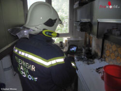 Der Mann konnte zwar den Brand noch rechtzeitig löschen, zog sich jedoch Verbrennungen unbestimmten Grades zu. Seine drei Kinder konnten sich in Sicherheit bringen. Ein Atemschutztrupp begab sich mit der Wärmebildkamera zur Kontrolle in die Wohnung und öffnete die Fenster damit mit der Druckbelüftung des Stiegenhauses bzw. der Wohnung begonnen werden konnte. Nach rund 45 Minuten war der Einsatz für die 14 Mitglieder mit ihren zwei Fahrzeugen unter der Einsatzleitung von BI Martin Gall beendet und konnten zur Gerätewartung ins Feuerwehrhaus wieder einrücken.