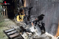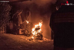 Oö: Mopedbrand in Hofkirchen/Traunkreis → Flammen griffen von Gartenhütte über