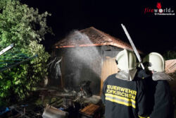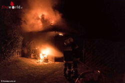 HOFKIRCHEN IM TRAUNKREIS (OÖ): Kurz vor Mitternacht wurde die Feuerwehr Hofkirchen i. Traunkreis am 29. Juni 2016 mittels Sirene und Pager zu einem Brand eines Kleinkraftrades alarmiert. Beim Eintreffen des ersten Fahrzeuges griff der Brand vom Moped bereits auf die Gartenhütte über, an der das Moped lehnte.