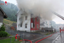 Das Feuer brach im Erdgeschoss aus und hatte sich beim Eintreffen der Rettungskräfte bereits bis ins erste Stockwerk ausgebreitet. Mittels Hubretter konnte die Feuerwehr zwei Frauen aus dem ersten Stockwerk retten. Sie mussten durch den Rettungsdienst wegen Verdacht auf Rauchgasvergiftungen ins Spital gebracht werden. Zwei Männer konnten das Haus selbständig verlassen. Einer der Männer musste ebenfalls wegen Verdacht auf eine Rauchgasvergiftung in Spitalpflege gebracht werden.