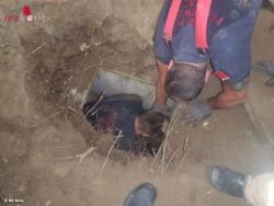 Erste Versuche das Tier heraus zu locken und zu befreien, schlugen fehl. Da es sich um ein sehr verzweigtes Rohrnetz handelte, wurde eine Spezialkamera der Fa. Rohrmax sowie weitere Einsatzkräfte der Berufsfeuerwehr nachalarmiert. Durch diese Kamera war es möglich, die Katze sowie vergrabene Revisionsschächte genau zu lokalisieren und sich so Zugang zu den Rohren zu verschaffen. Die Katze konnte über diese jedoch noch immer nicht erreicht werden und die Einsatzkräfte starteten einen neuen Versuch.