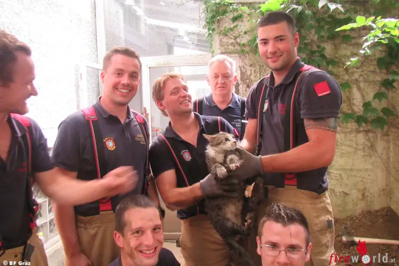 GRAZ (STMK): Das Tierrettungsfahrzeug der Grazer Berufsfeuerwehr wurde am 30. Juni 2016 zu einer besorgten Katzenbesitzerin in die Prankergasse alarmiert. Die Anruferin schilderte, dass ihre Katze vermutlich in einem Rohr feststeckt und sich nicht mehr selbstständig befreien kann.