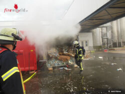 Bei Ankunft der Betriebsfeuerwehr und der Freiwilligen Feuerwehr drang dichter Rauch aus dem geschlossenen Behältnis heraus. Die Feuerwehr öffnete den Container und nahm mit drei Rohren unter Atemschutz die Brandbekämpfung vor, es wurde auch Schaum eingesetzt. Mittels Radlader eines ortsansässigen Unternehmens wurde das Altpapier aus dem Container geholt und dann abgelöscht.